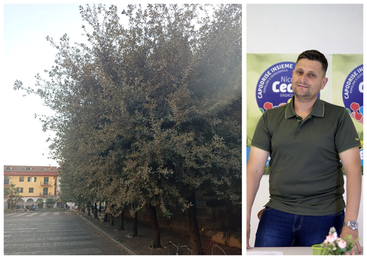 Ieri sul suo profilo social l’ex sindaco e leader della minoranza Vincenzo Negro ha mostrato le foto degli alberi dello slargo centrale del paese, piazza Massaro, accanto al Comune.
