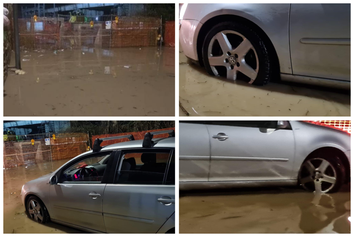 Mancano davvero pochi centimetri e poi tracima tutto nei garage di queste persone. Davanti al palazzo si è formato una sorta di lago, l’acqua non defluisce per via dei vicini lavori dell’alta velocità.