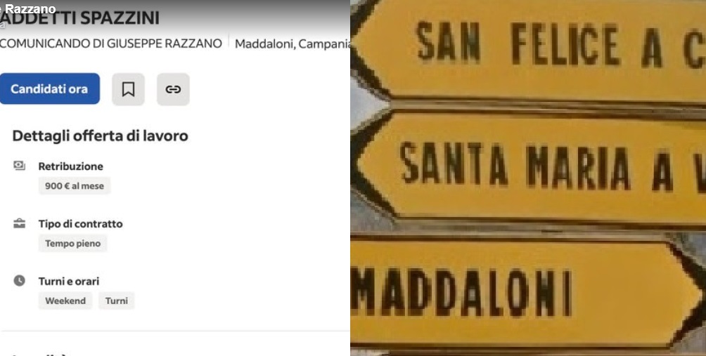 MADDALONI. Un’inserzione ingannevole per la ricerca di operatori ecologici è stata pubblicata sulla piattaforma di recruiting Indeed. La segnalazione arriva da Giuseppe Razzano, imprenditore e membro del direttivo dell’Asi Caserta, che ha denunciato l’accaduto attraverso i suoi profili social, dichiarando che si tratta di un tentativo di frode finalizzato a generare false aspettative e screditarlo.