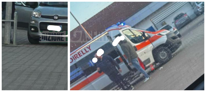 Auto contro palo nel parcheggio del market: arriva ambulanza