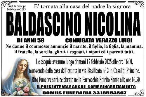 Una brutta notizia ha colpito duramente la comunità di Casal di Principe. Una donna di 59 anni, Nicolina Baldascino, è deceduta in casa sua situata in via Basilicata in seguito a un malore.