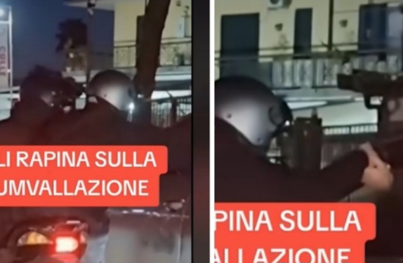 Serata di paura sulla Circumvallazione esterna, nei pressi della rotonda di Mugnano, dove due malviventi a bordo di uno scooter hanno messo a segno due rapine. Armati di pistola, come raccontato dai testimoni, hanno affiancato due automobili per sottrarre beni di valore a chi si trovava all’interno delle auto. Una delle due rapine è stata ripresa da un cittadino con il suo cellulare. Si vedono chiaramente i due delinquenti, su uno scooter con una targa probabilmente contraffatta, minacciare il conducente di un’auto che gli consegna un orologio. Le immagini shock sono state inviate al deputato Francesco Emilio Borrelli.