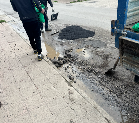 Capodrise. Ad ora di pranzo abbiamo visto all’opera i lavoratori della ditta Feola che per conto del Comune rappezzavano la voragine all’inizio di via Retella (strada tra le principali), non lontano dalla rotonda. Era diventato davvero vitale intervenire perchè la buca era profondissima, c’erano pezzi di asfalto ovunque in un punto anche pericoloso per gli stessi pedoni oltre che per gli automobilisti.