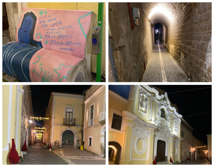 Centro storico delizioso, pedonalizzato, pletora di vicoli nascenti ortogonalmente dall’asse viario principale, sapientemente vivificati da una sequenza cadenzata di luci a pavimento disposte lungo la direttrice mediana, accattivanti panchine invitanti alla lettura…