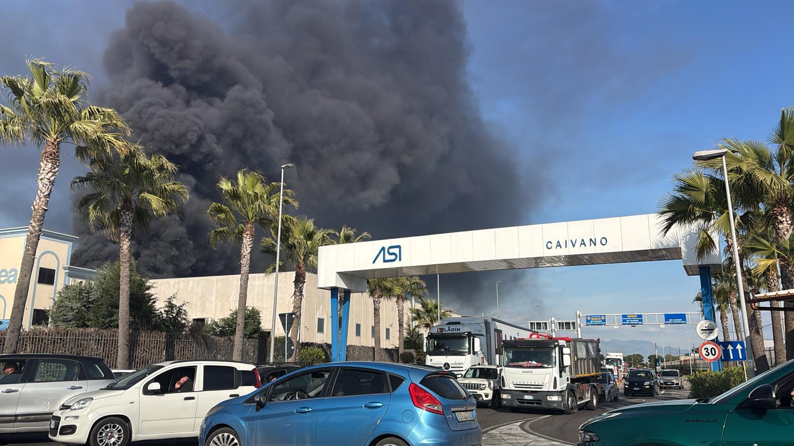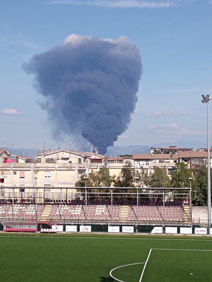 MARCIANISE/CAIVANO. Un vasto incendio è divampato oggi pomeriggio, intorno alle ore 16:00, all’interno della Chimpex, una fabbrica chimica situata nell’area industriale di Pascarola, al confine tra i comuni di Caivano e Marcianise. Le fiamme hanno generato in pochi minuti una spaventosa nube nera che si sta estendendo rapidamente su tutto il comprensorio, avvolgendo i centri abitati di Marcianise, Orta di Atella, Caivano e numerosi altri comuni della zona, compresa l’area di Aversa e Santa Maria Capua Vetere.