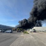 L’impianto coinvolto, secondo le prime ricostruzioni, produce o tratta sostanze chimiche, e questo ha contribuito a rendere particolarmente denso e potenzialmente tossico il fumo sprigionato. Il rogo, scoppiato nel cuore del pomeriggio, ha subito attirato l’attenzione per l’intensità delle fiamme e l’odore acre nell’aria, visibile anche da decine di chilometri di distanza.