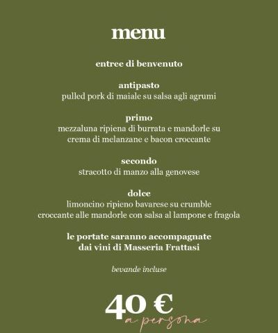 Sarà lo chef Carmine a occuparsi del menù per deliziare i palati delle persone che vorranno concedersi una serata ricca di gusto. Le varie portate saranno accompagnate dal vino top dell’azienda caudina.