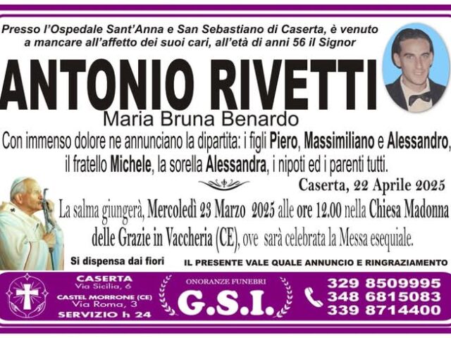 Gli amici e i parenti sono rimasti profondamente colpiti dalla sua scomparsa, ritrovandosi nel dolore e nello sconforto. Si chiamava Antonio Rivetti, aveva 56 anni, se ne è andato mentre si trovava nell’ospedale Sant’Anna e San Sebastiano a Caserta.