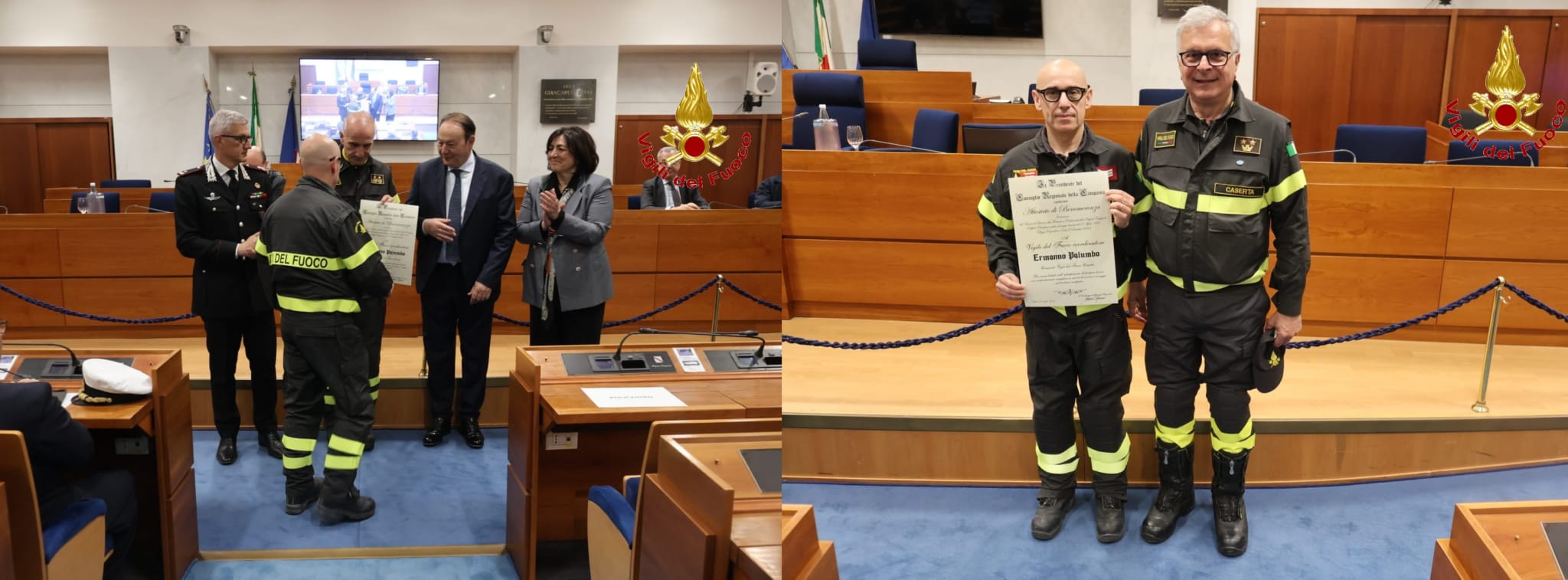Per il Comando provinciale di Caserta il riconoscimento è stato conferito al Vigile del fuoco Coordinatore Ermanno Palumbo che il 28 gennaio 2025, insieme alla squadra di servizio, accorse in aiuto di un ragazzo che si lancio nel fiume Volturno nel tentativo di suicidarsi.