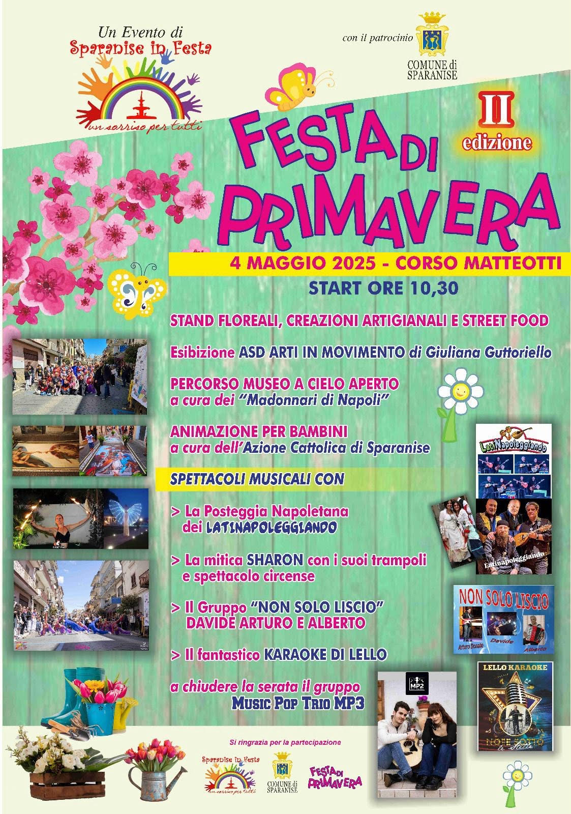 Sparanise. Mancano ormai pochi giorni alla seconda edizione della “Festa di Primavera” organizzata dall’associazione “Sparanise in Festa – Un sorriso per tutti” con il patrocinio del Comune di Sparanise.