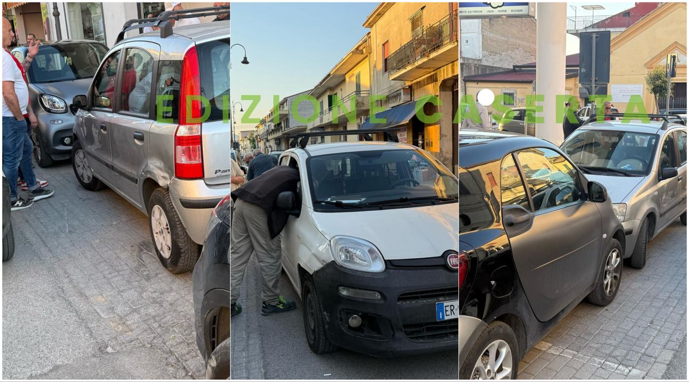 Il sinistro è avvenuto a Capodrise, lungo via Santa Croce, strada principale. Una Fiat Panda guidata da un signore, che viaggiava spedito, ha preso in pieno tre auto, un’altra Fiat Panda, una Nissan Quasquai e una Smart, tutte e tre ferme in sosta ai margini della strada a destra.