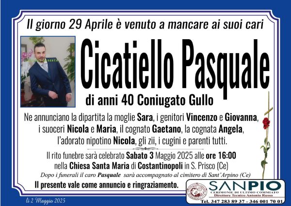 Una volta eseguita la cerimonia, Pasquale sarà accompagnato nel suo ultimo viaggio presso il cimitero di Sant’Arpino.