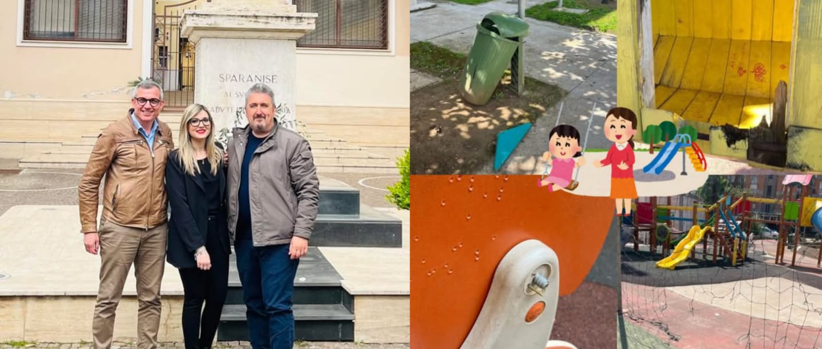 Sparanise. Le villette comunali sparse per la città di Sparanise, si ritrovano in condizioni di incuria e di degrado, come le giostre pericolanti e quindi non a norma, condizioni che possono mettere a rischio la sicurezza dei bambini che si trovano a frequentare tali luoghi.