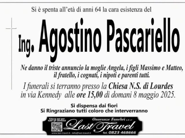 Si chiamava Agostino Pascariello, aveva 64 anni. Oltre che come un grande professionista, era conosciuto come una brava persona, un marito e padre amorevole, gentile e altruista. La sua scomparsa lasciato un grande vuoto nelle persone che hanno avuto la fortuna di conoscerlo.