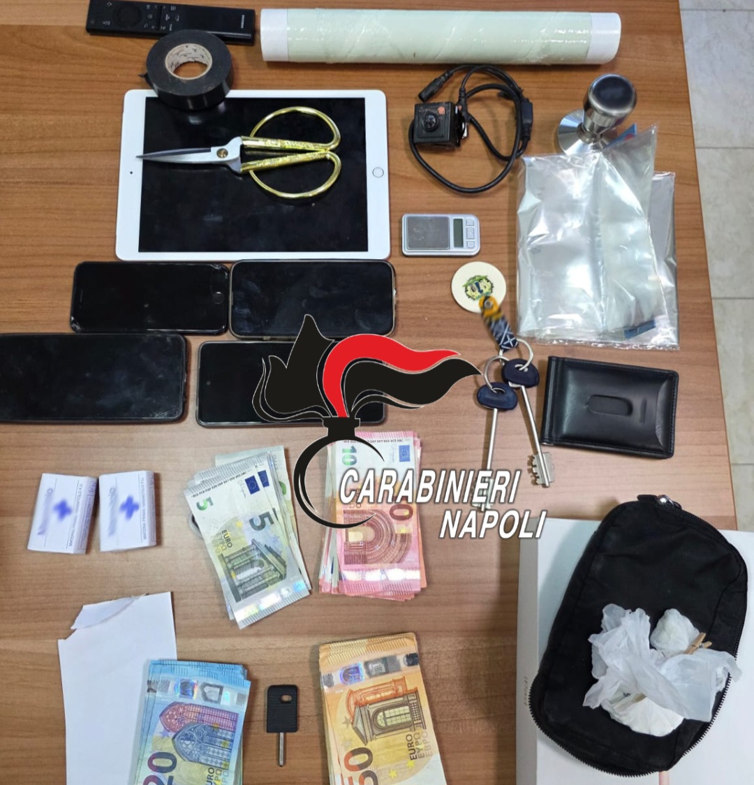 Durante la perquisizione i carabinieri hanno sequestrato 1 televisore da 50 pollici ancora da istallare, 1 telecamera hd 8k e 1 tablet per monitorare e controllare le telecamere. Sequestrato ance diverso materiale per il confezionamento dello stupefacente.