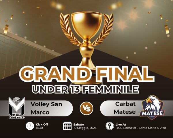 Santa Maria a Vico. Sabato 10 Maggio alle ore 18:30 all’ITC Bachelet di Santa Maria a Vico si disputerà la Finale Provinciale Under 13 Femminile di Pallavolo tra Volley San Marco e Carbat Matese.