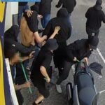 Un 26enne, originario di Aversa, è stato arrestato poiché individuato nel gruppo di persone che, al passaggio dell’autobus con a bordo la squadra ospite, hanno lanciato oggetti verso il veicolo in transito. Il giovane, dopo aver afferrato una sedia di un bar, l’ha scagliata verso l’autobus, provocando lesioni al parabrezza. Per gli stessi fatti, un 54enne, originario dell’agro aversano, è stato denunciato in stato di libertà.