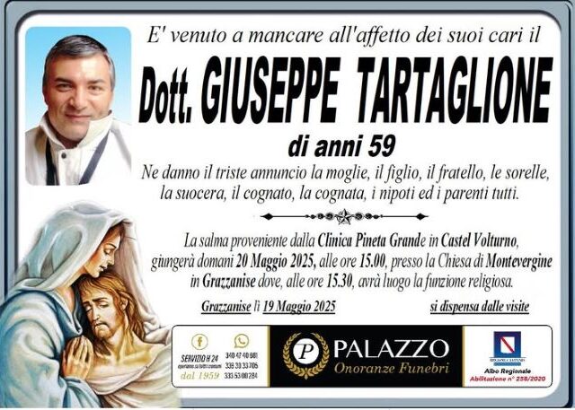 Si chiamava Giuseppe Tartaglione e aveva 59 anni. Era conosciuto come una gran brava persona, un medico che svolgeva il suo lavoro con grande professionalità e gentilezza, sempre disponibile ad aiutare. Era un ottimo padre e marito.