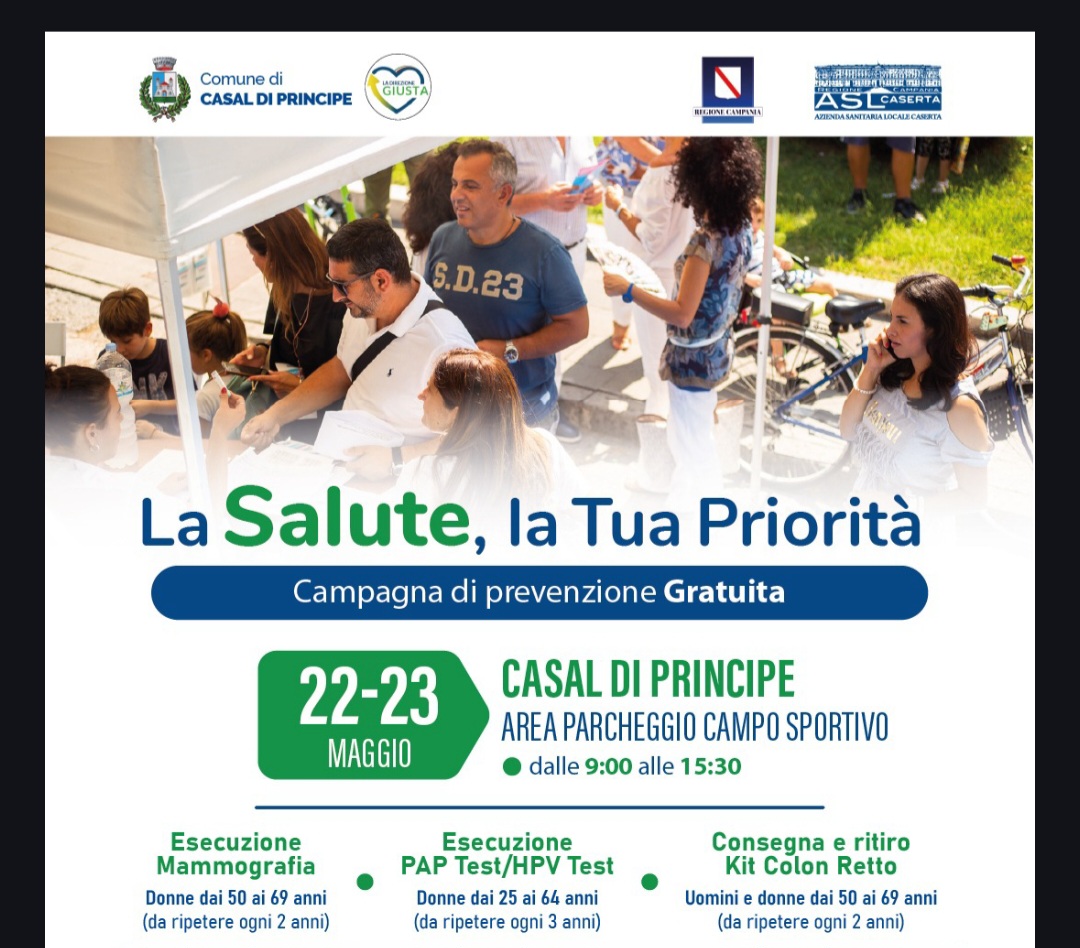 Casal di Principe. Dopo l’ottima partecipazione registrata nel mese di dicembre, il comitato La Direzione Giusta, in collaborazione con l’ASL di Caserta, promuove due nuove giornate interamente dedicate alla prevenzione e alla salute dei cittadini.