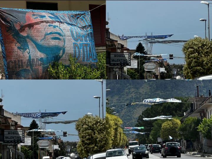 Un risveglio molto gradito per le persone che vivono nella zona, felici del trionfo della squadra azzurra e di ritrovarsi con tali addobbi che testimoniano la grande vittoria conquistata dalla loro squadra del cuore.