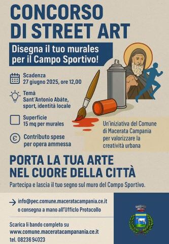 Macerata Campania. L’Amministrazione Comunale di Macerata Campania ha indetto un concorso di progetti per la realizzazione di Murales.