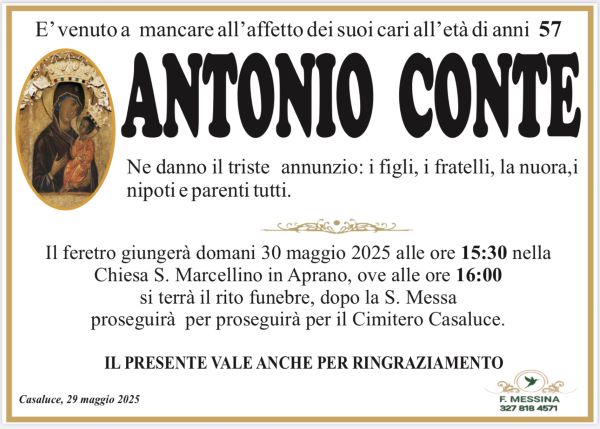 A restare più segnati dalla sua scomparsa, i suoi figli e i fratelli. Si chiamava Antonio Conte. Era conosciuto come un uomo perbene, gentile e un lavoratore onesto, un ottimo padre, sempre amorevole e buono coi figli.