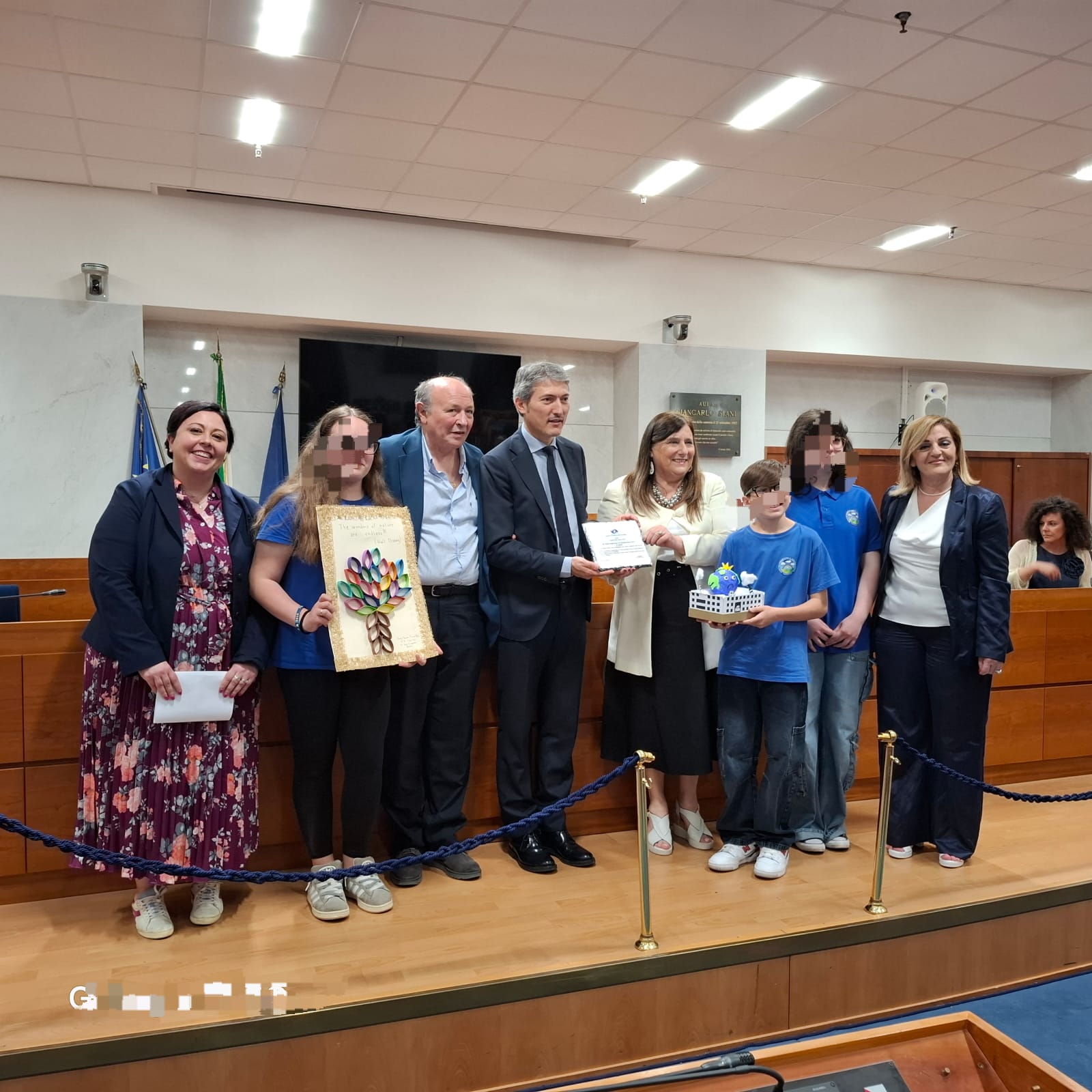 Un gruppo di studenti della Scuola secondaria di primo grado, coordinati dalla prof.ssa Natalia Di Meo, referente e-twinning, ha meritato il premio, conferito dal dott. Tommaso Pellegrino, direttore dell’Osservatorio per la Geo biodiversità del Consiglio Regionale della Campania, per delega del Presidente del Consiglio Regionale della Campania dott. Gennaro Oliviero, grazie all’originalità dei lavori presentati alla fine di un percorso didattico, che ha previsto attività decontestualizzate logisticamente, in luoghi aperti ed a contatto con la natura: attività che sono state condivise con i partner di altri Paesi.