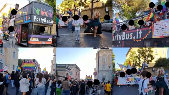 Nel corteo anche un autobus addobbato per l’occasione con le varie bandiere. Il tutto è stato organizzato da “Rain Arcigay Caserta” , “Noi Voci Di Donne”, la “Cgil Caserta”, dal comitato “Don Peppe Diana”, e varie altre associazioni.