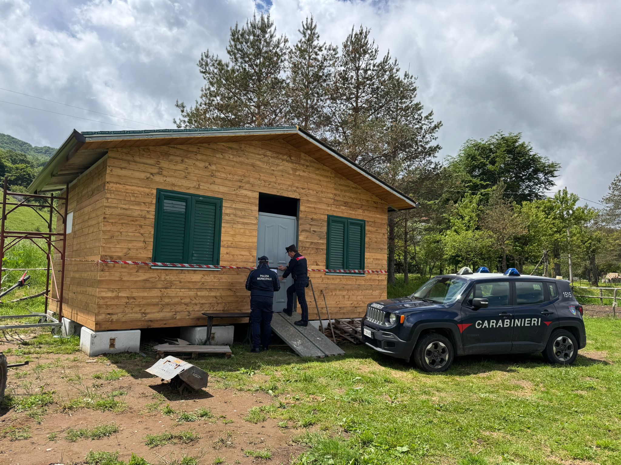 Matese.I militari del Nucleo Carabinieri Forestale di San Gregorio Matese (CE), con lausilio del Responsabile dell’Ufficio Tecnico del Comune di San Gregorio Matese, hanno svolto un controllo in materia edilizia in località Difesa del comune di San Gregorio Matese, dove hanno constatato la presenza di una struttura in corso di costruzione costituita da due container affiancati rivestiti esternamente con doghe in legno, ancorati tra loro mediante profilati in acciaio bullonati, montati su blocchi di cemento vibrocompresso poggiati al suolo.