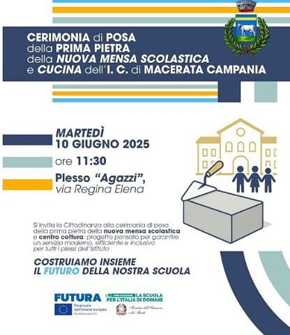 Cari Concittadini, martedì poseremo la prima pietra per la costruzione di un fabbricato da adibire a cucina, di servizio per tutto l’Istituto Comprensivo di Macerata Campania, nonché a mensa per la Scuola materna Agazzi di via Elena.