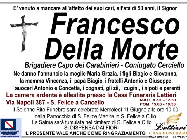 Non c’è stato nulla da fare per Francesco Della Morte, brigadiere sanfeliciano in servizio presso il nucleo radiomobile della compagnia di Marcianise.