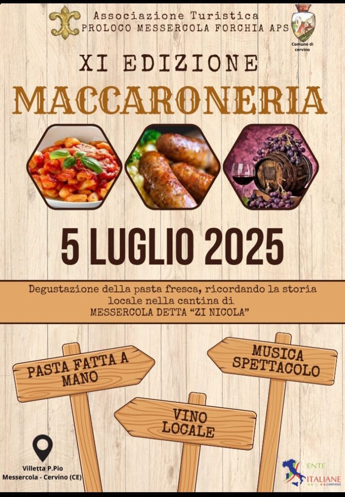 L’evento, si terrà il 5 luglio presso la Villetta Padre Pio a Messercola, frazione del comune di Cervino. A organizzare il tutto è l’Associazione turistica Pro Loco Messercola Forchia APS, col patrocino del comune di Cervino.