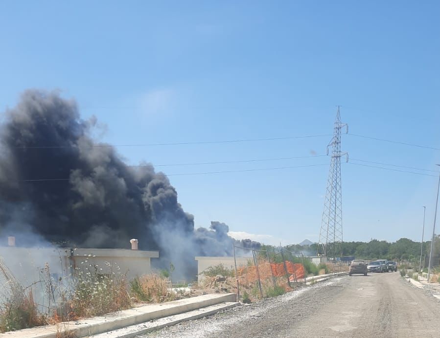 MADDALONI. Un incendio è divampato nella tarda mattinata di oggi, nella zona di via Baldina, a Maddaloni, nei pressi di via Cancello. Le fiamme hanno interessato un cantiere attivo per i lavori alle fogne e ai sottoservizi, in particolare un impianto dove erano stoccati materiali in plastica destinati all’acquedotto.