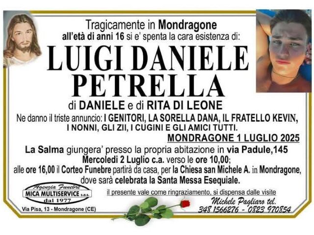 Il ragazzo ha perso la vita durante la notte. Si chiamava Luigi Daniele Petrella, aveva 16 anni. Il corpo del 16enne è stato trasferito all’ospedale di Caserta per l’autopsia.