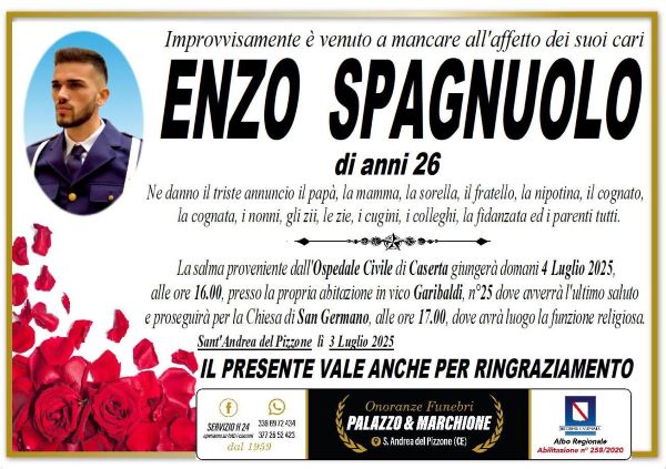 I medici hanno dovuto dichiarare il decesso del giovane. La sua morte ha sconvolto amici, familiari e i colleghi, oltre che l’intera comunità che si è stretta ai parenti appena saputa la triste notizia per dare loro conforto e supporto. Enzo era un giovane pieno di entusiasmo e sogni, una persona oneste e gentile, dedito al suo lavoro che svolgeva con grande professionalità.
