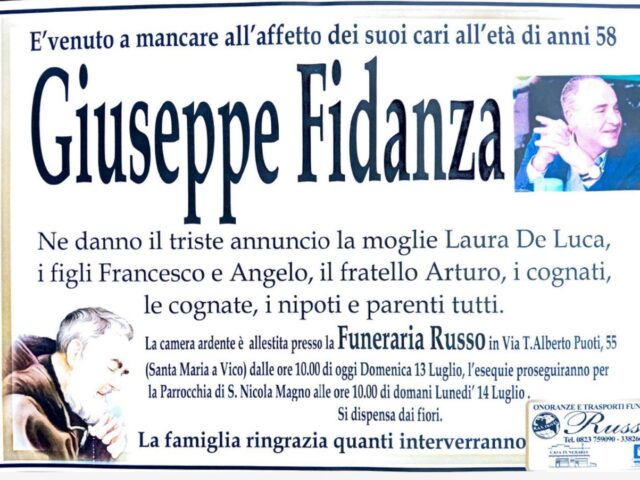 Santa Maria a Vico. Grave lutto nella notte nella zona alta di Santa Maria a Vico, via Priori, è venuto a mancare all’affetto dei suoi cari il 58enne Giuseppe Fidanza.