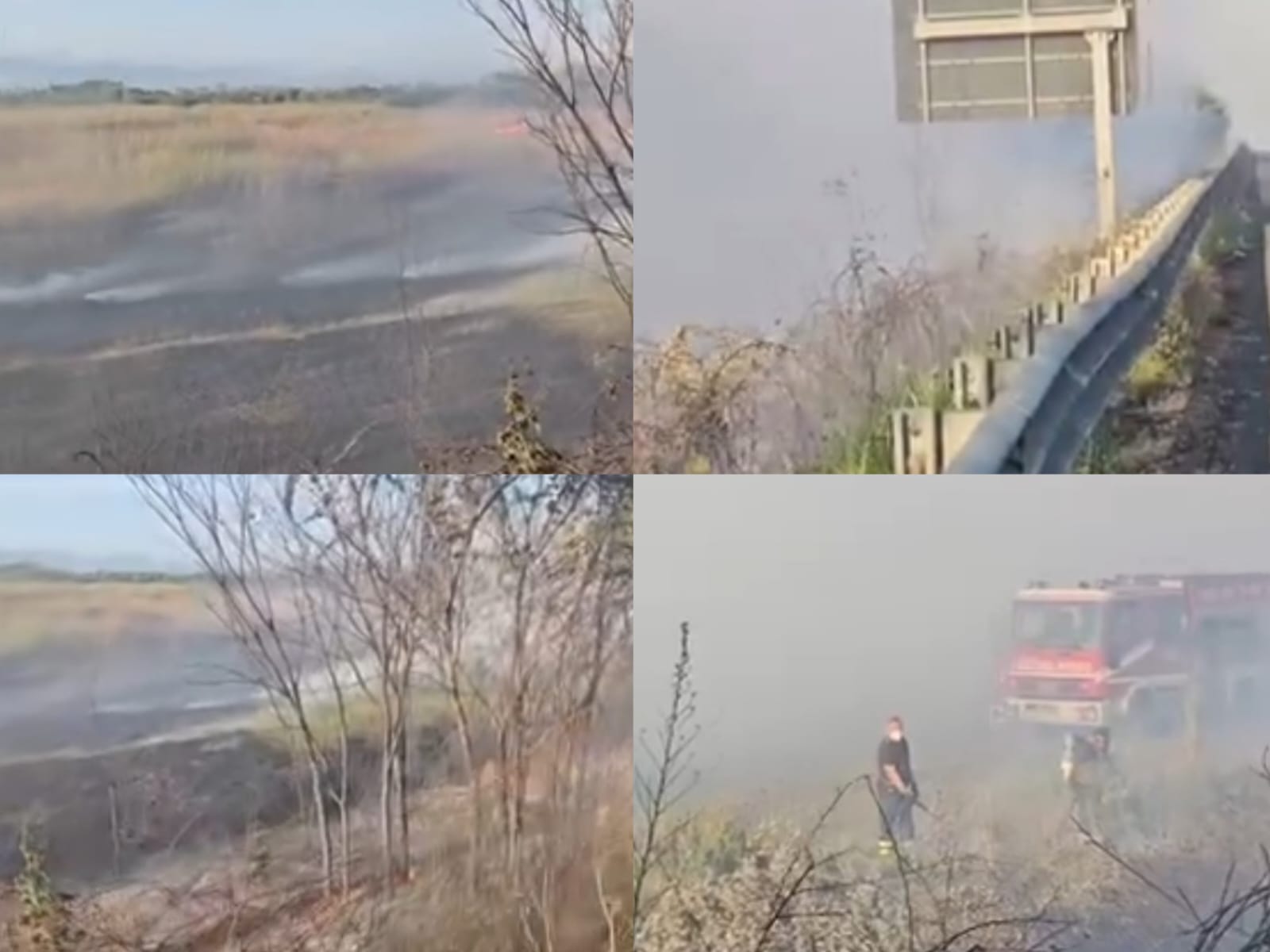 Villa Literno. Un maxi incendio si sta verificando nei pressi della Nola-Villa Literno, zona Villa Literno. A bruciare la vegetazione situata proprio accanto alla statale.