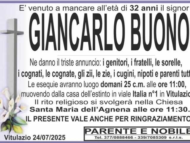 I funerali saranno celebrati domani alle ore 11:30 presso la Chiesa Santa Maria Dell’Agnena.