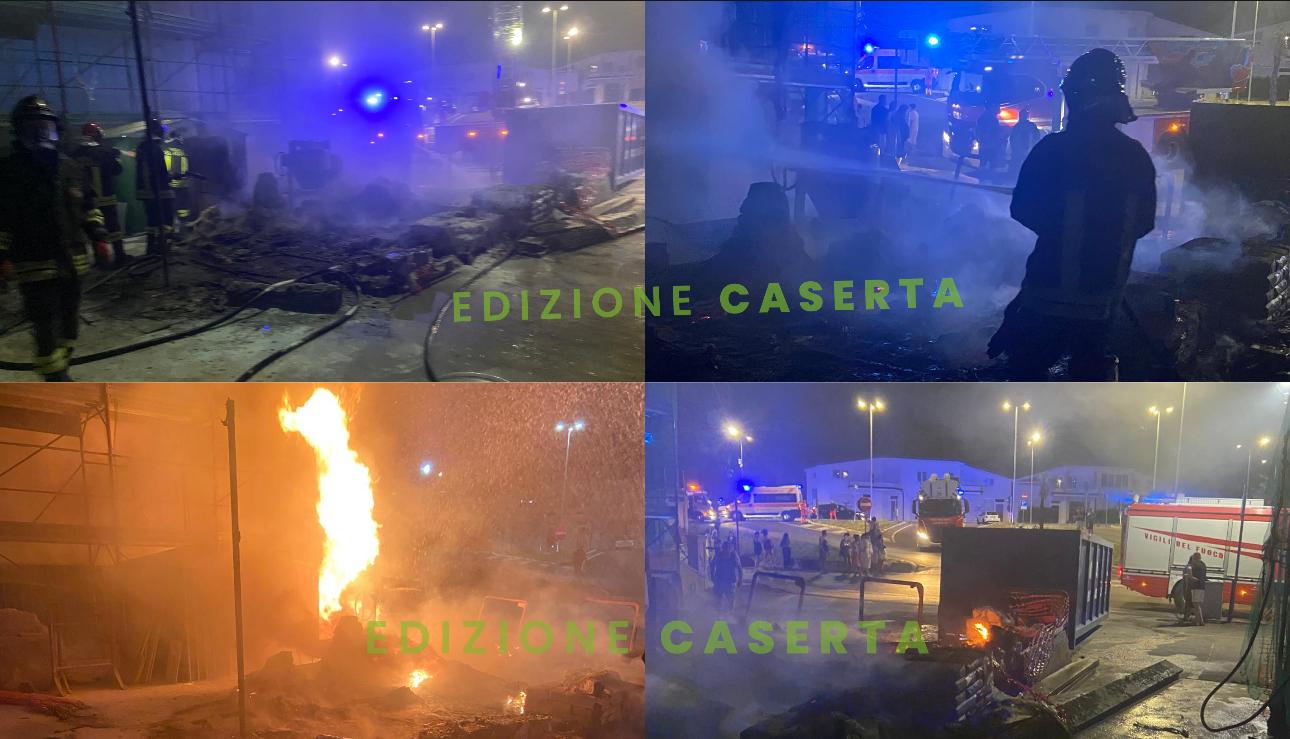 Santa Maria a Vico. Maxi intervento dei vigili del fuoco prima dell’alba a Santa Maria a Vico in via Ferdinando d’Aragona, per del materiale edile in fiamme.