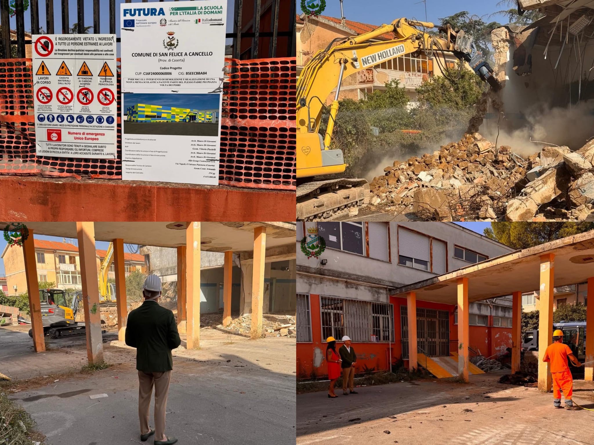 Santa Felice a Cancello. Una bella notizia per San Felice a Cancello, questa mattina, è stata demolita la vecchia struttura dismessa nei plessi Padre Pio e Don Milani, importante passo in avanti per realizzare una nuova mensa scolastica.