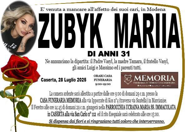 Domani si terranno i funerali di Mariia a Caserta. La sua famiglia vive a Sala di Caserta, in via San Donato. Il rito esequiale sarà celebrato alle ore 15 presso la Parrocchia Ucraina SS Immacolata a Caserta in via San Carlo.