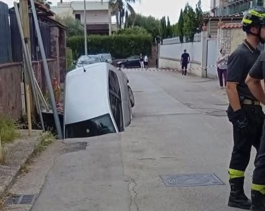 Melito. Attimi di puro terrore a Melito, dove una macchina è sprofondata all’improvviso in una grossa cavità apertasi nel manto stradale. L’episodio si è verificato in una traversa di via Giulio Cesare, un’arteria secondaria che collega la cittadina a Casandrino.