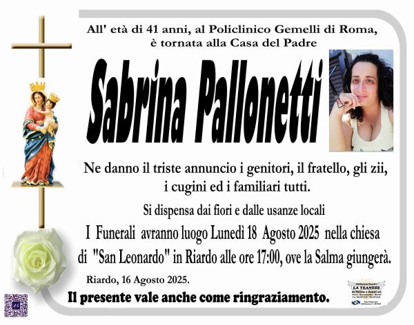 La sua dipartita ha scosso la comunità, amici e parenti. Sabrina era conosciuta come una donna forte, intelligente, una persona speciale, altruista e generosa. La brutta notizia si è diffusa rapidamente colpendo duramente la comunità, che ora mostra la propria vicinanza agli amici e familiari cercando di dare loro conforto.