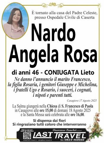 Si chiamava Angela Rosa Nardo. Un brutto male l’ha purtroppo strappata all’affetto dei suoi cari. Nonostante abbia combattuto con tutta sé stessa e gli sforzi dei medici, non ce l’ha fatta, e quel male ha vinto segnando il tragico epilogo avvenuto presso l’Ospedale Civile di Caserta.