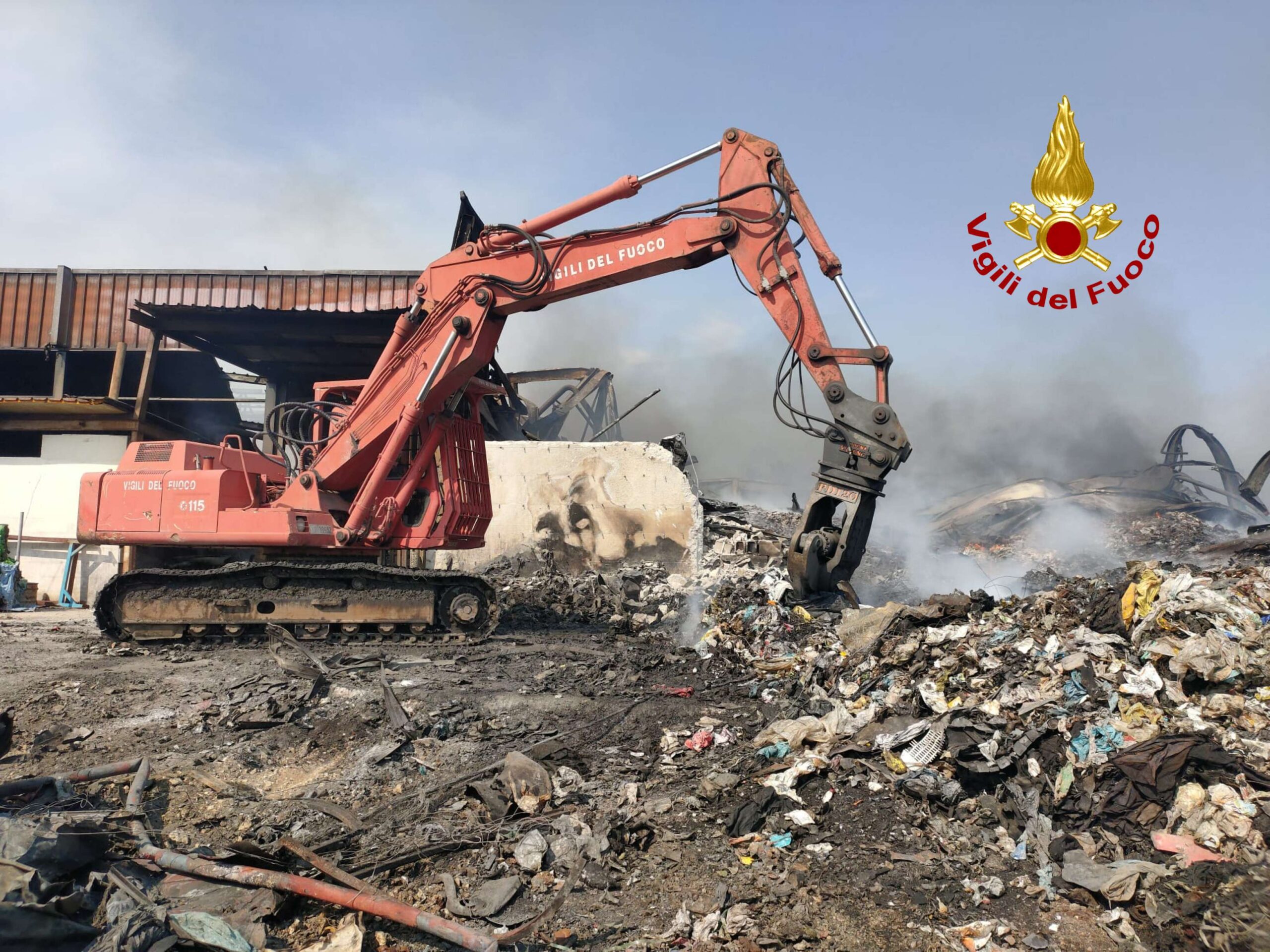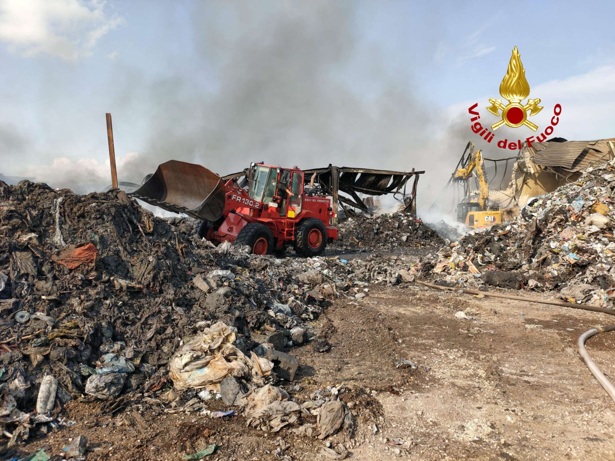 Le operazioni di spegnimento sono coordinate direttamente dal Comandante Provinciale, Arch. D’Agostino M.A., con il costante supporto di tutti i funzionari del Comando. L’intervento si è rivelato particolarmente complesso a causa del cedimento strutturale dell’edificio che ospitava i rifiuti, rendendo necessarie operazioni di abbattimento e rimozione delle strutture metalliche danneggiate dall’incendio tramite mezzi cingolati, ruspe e pale meccaniche.