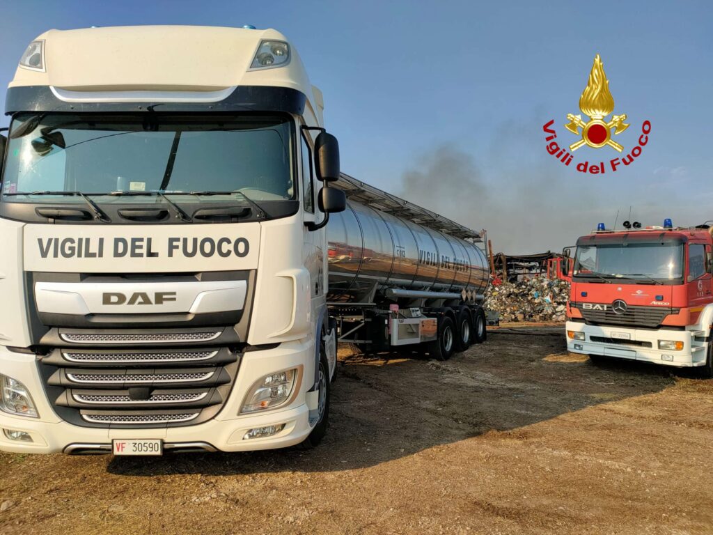 TEANO. Continua ininterrottamente l’azione dei Vigili del Fuoco del Comando Provinciale di Caserta per domare l’incendio divampato il 16 agosto scorso all’interno di un capannone adibito allo smaltimento dei rifiuti, situato nel comune di Teano.
