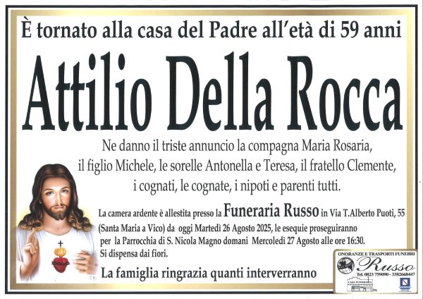 I suoi funerali saranno celebrati oggi alle ore 16:30 presso la Parrocchia di San Nicola Magno.