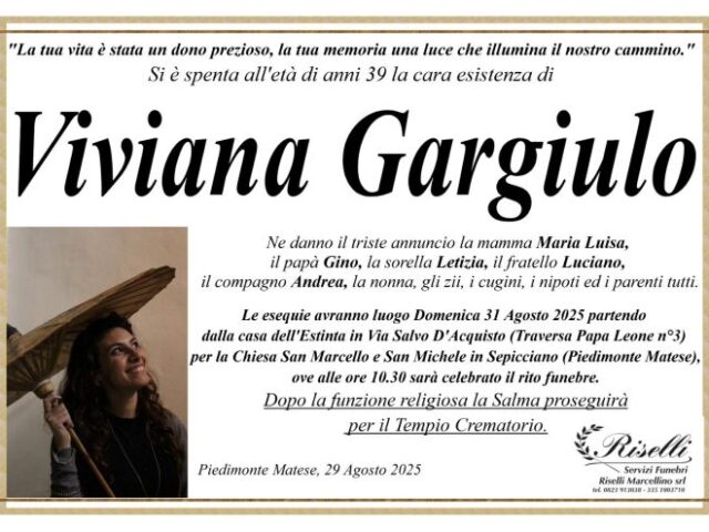 Viviana Gargiulo se ne è andata via per sempre all’età di soli 39 anni. Tutti la conoscevano come una giovane donna forte, intelligente, gentile, l’amica di tutti, solare e piena di energie. La sua scomparsa ha gettato nel dolore e nello sconforto amici e parenti che sono ora in lacrime non riuscendo ad accettare tale perdita.