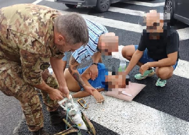 Il militare, un Maresciallo Capo con esperienza in ambito sanitario, sI Durante il tragitto ha notato la presenza di un uomo riverso a terra, in stato di semicoscienza e con una vistosa ferita alla testa. Attorno a lui alcuni passanti, preoccupati e disorientati, cercavano aiuto.