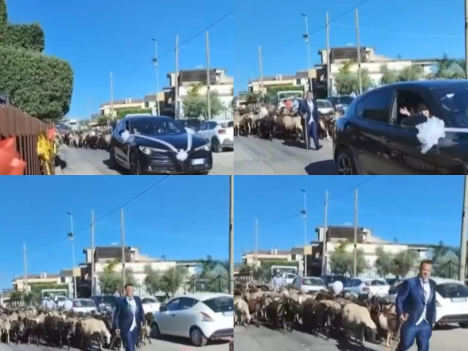 Lo sposo Nicola Marto e, ha deciso di recarsi in chiesa accompagnato da tutto il suo gregge, facendo sfilare le sue pecore, addobbate per l’evento con fiocchi e palloncini, per le strade della città con l’auto davanti che li precedeva. Poi è arrivata anche la sposa Mirela.